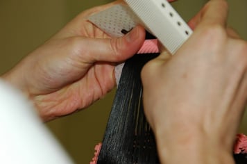 髪の状態を見極め、最適な前処理剤を使用します。